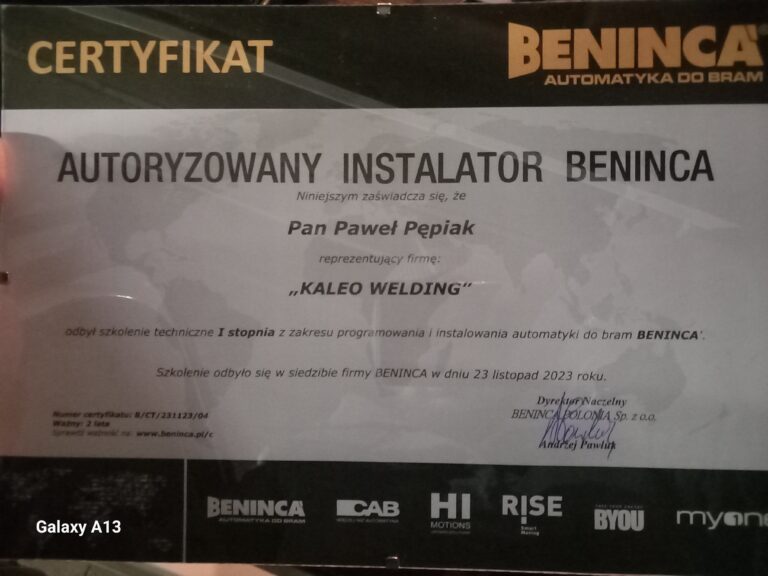 Jestem również autoryzowanym instalatorem automatyki do bram firmy „Beninca” i oferuję montaż oraz serwis automatów.